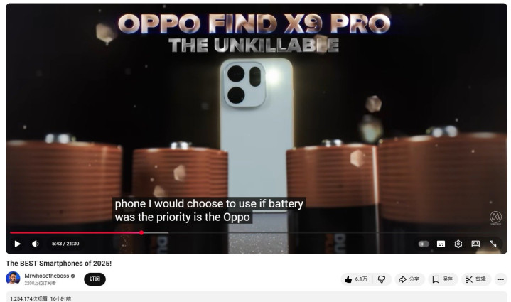 在与苹果、三星等全球顶尖旗舰机型的同台竞争中,OPPO Find X9 Pro一举拿下了其中最为重要的“年度最佳手机”大奖。Mrwhosetheboss对其给出了极高评价,称赞这部手机是“我们所能见到的最接近完美的手机”,这一评价迅速在全球科技爱好者中引发了热烈讨论。